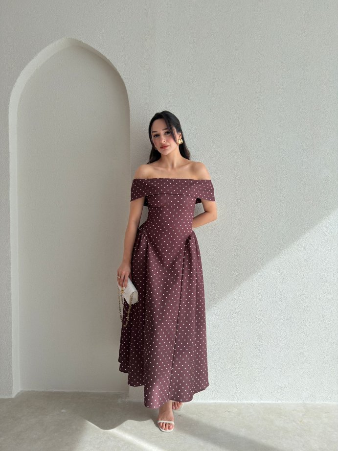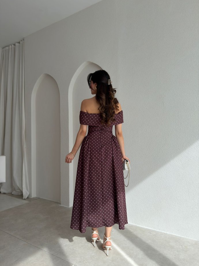 ALAVES Puantiyeli Midi Elbise 8995 - Kahverengi