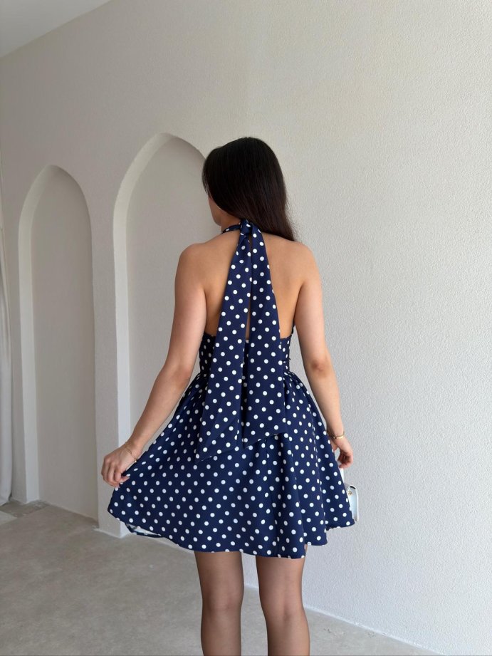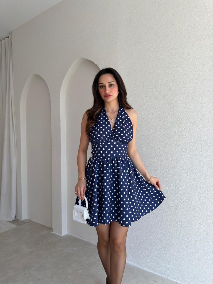 ALİEN Puantiyeli Mini Elbise 1111 - Lacivert