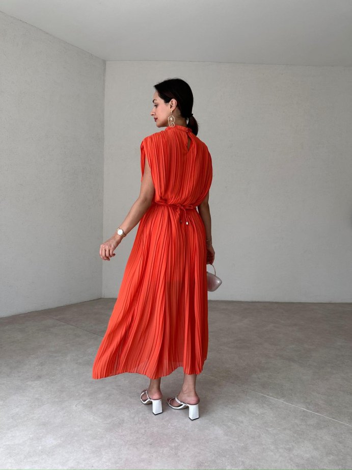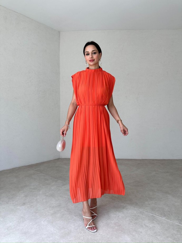 Dekolte Detaylı Midi THALES Elbise 5500 - Taş