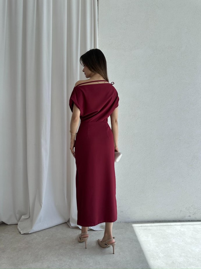Dekolte Detaylı Midi THALES Elbise 5500 - Taş