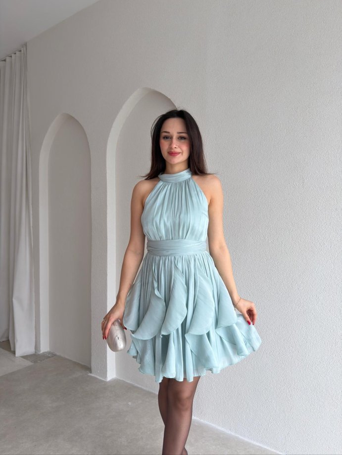 AMOURE Mini Elbise 3549 - Bebe Mavisi
