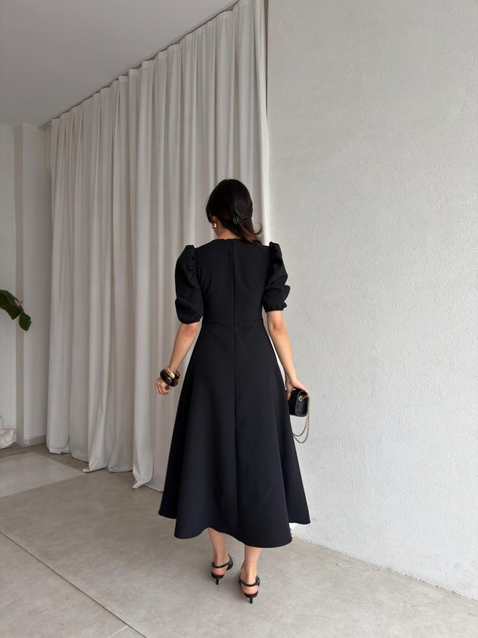 ZİLEY Gül Detaylı Midi Elbise 8117 - Siyah