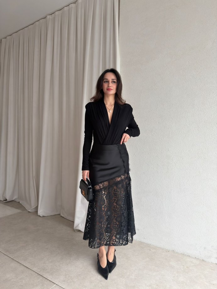 ARLEA Dantel Detaylı Etek 8122 - Siyah