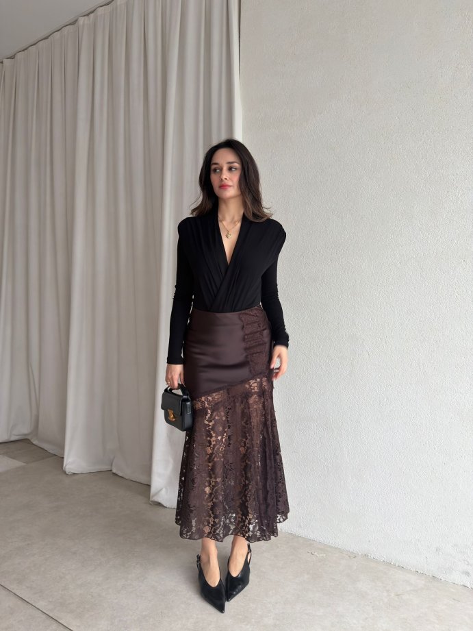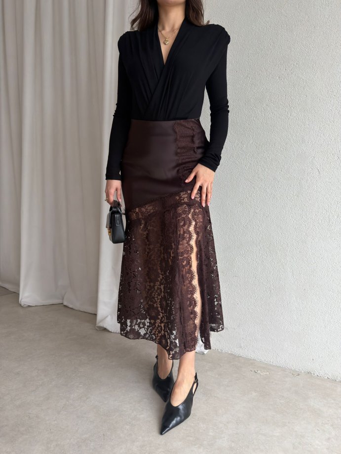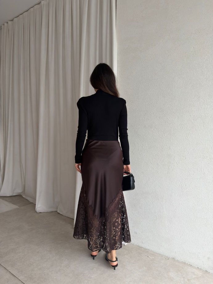 ELENOR Dantel Detaylı Etek 8838 - Acı Kahve