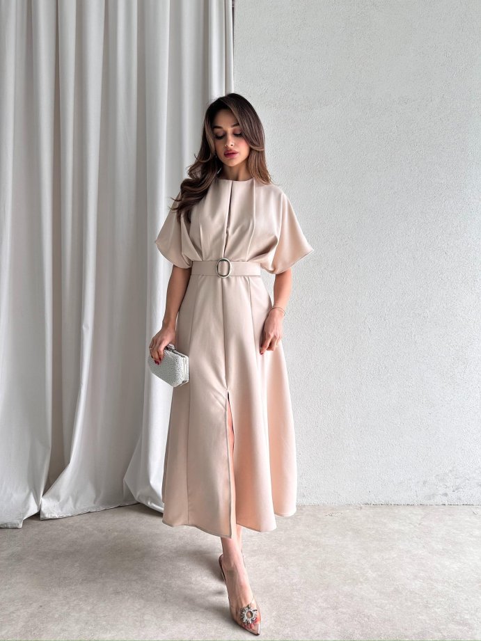 NAPOLİ Midi Elbise 8792 - Beyaz