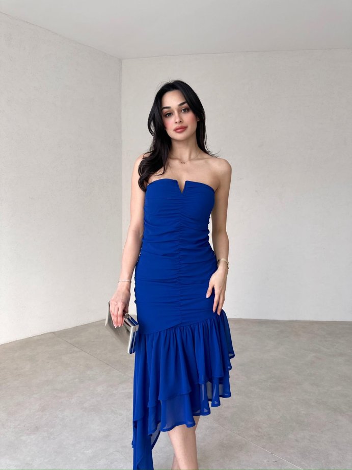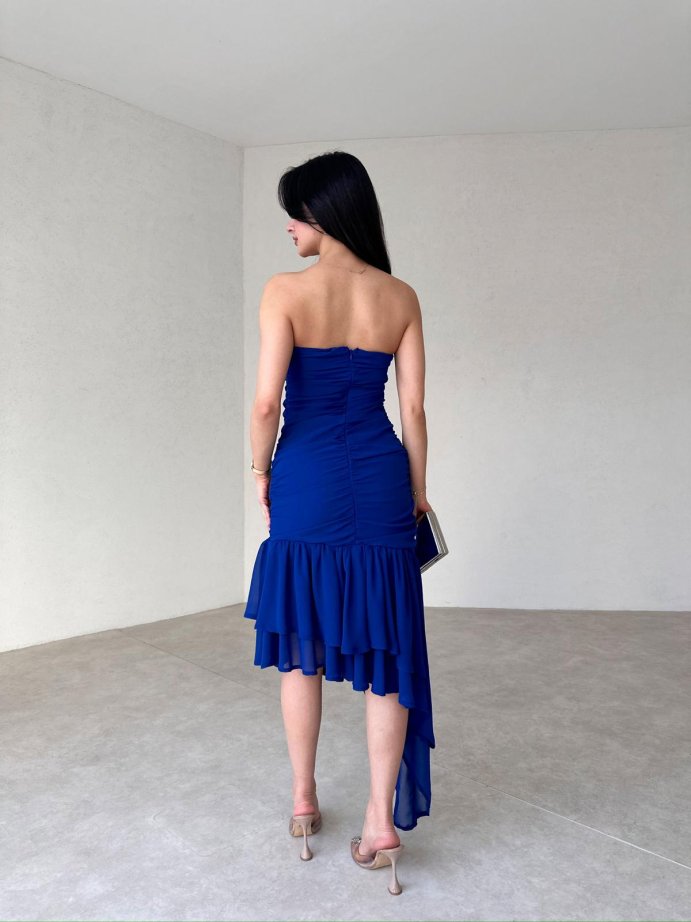Asimetrik Etekli Midi HOLDEN Elbise 4939 - Mavi