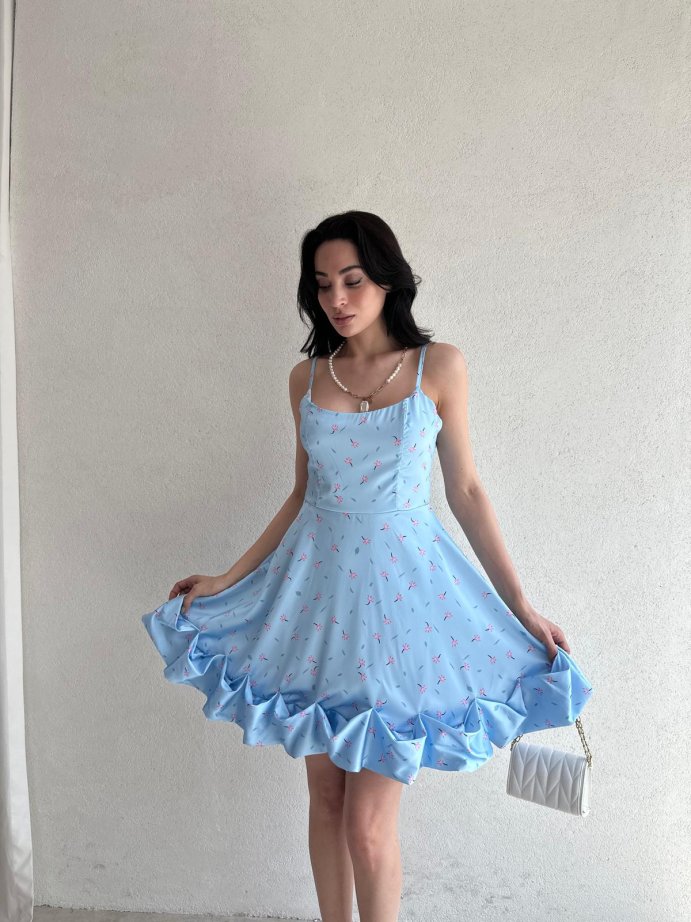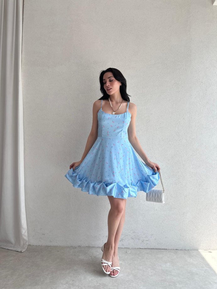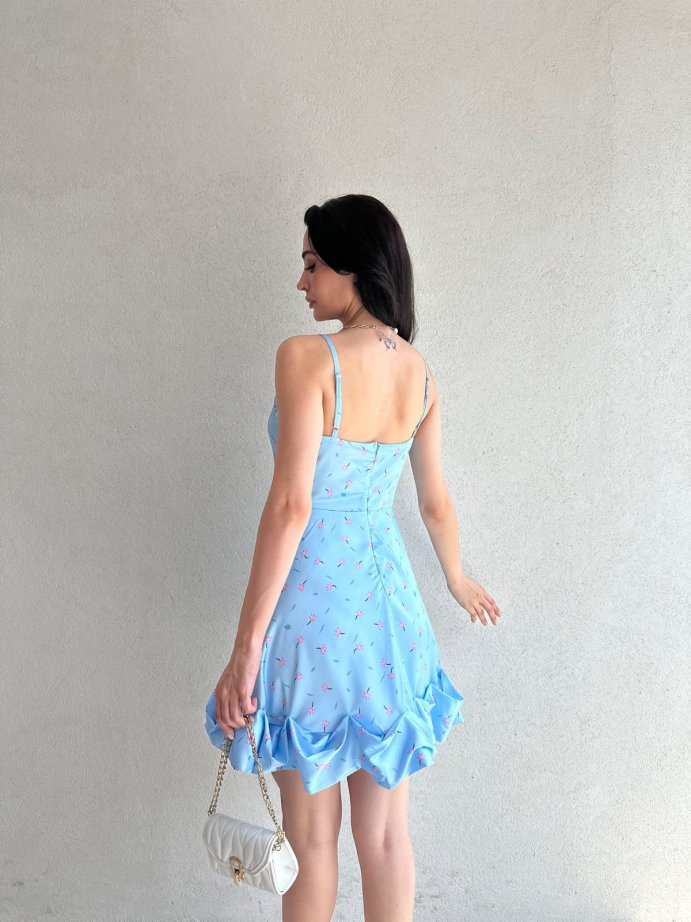 Askılı Etek Ucu Detaylı Mini CELSO Elbise tam kalıplıdır.