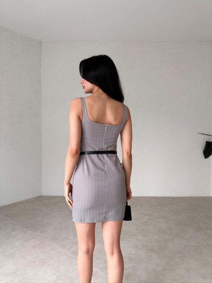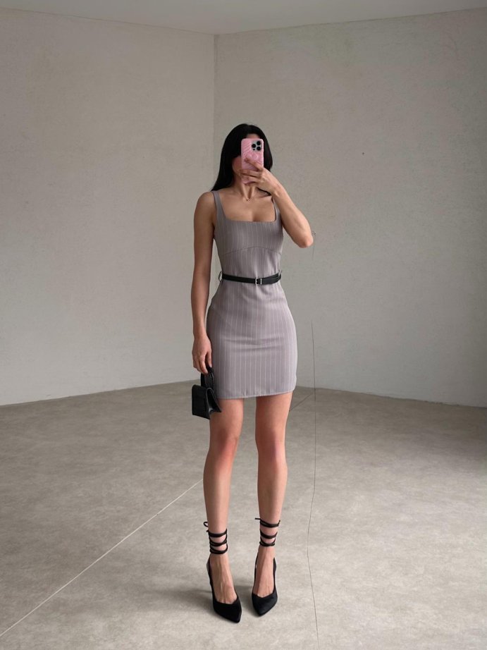 Askılı Mini BEDMAR Elbise 7388 - Gri