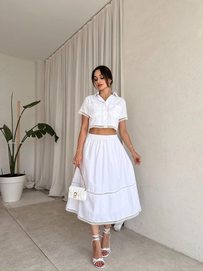 Görseldeki model 170 cm, 55 kg'dır. Üzerindeki S bedendir.