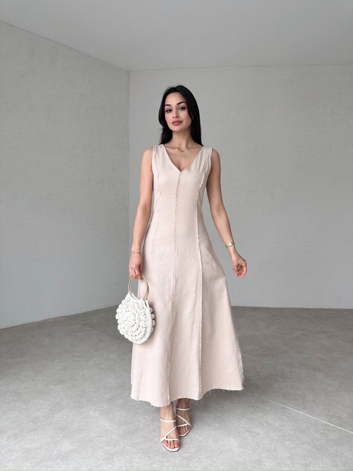 ASTRİD Maxi Elbise 7261 - Krem