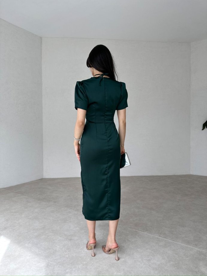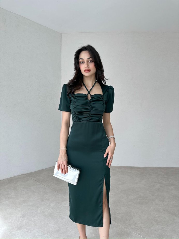 Bağlama Detaylı POEMO Elbise 2103 - Zümrüt Yeşili