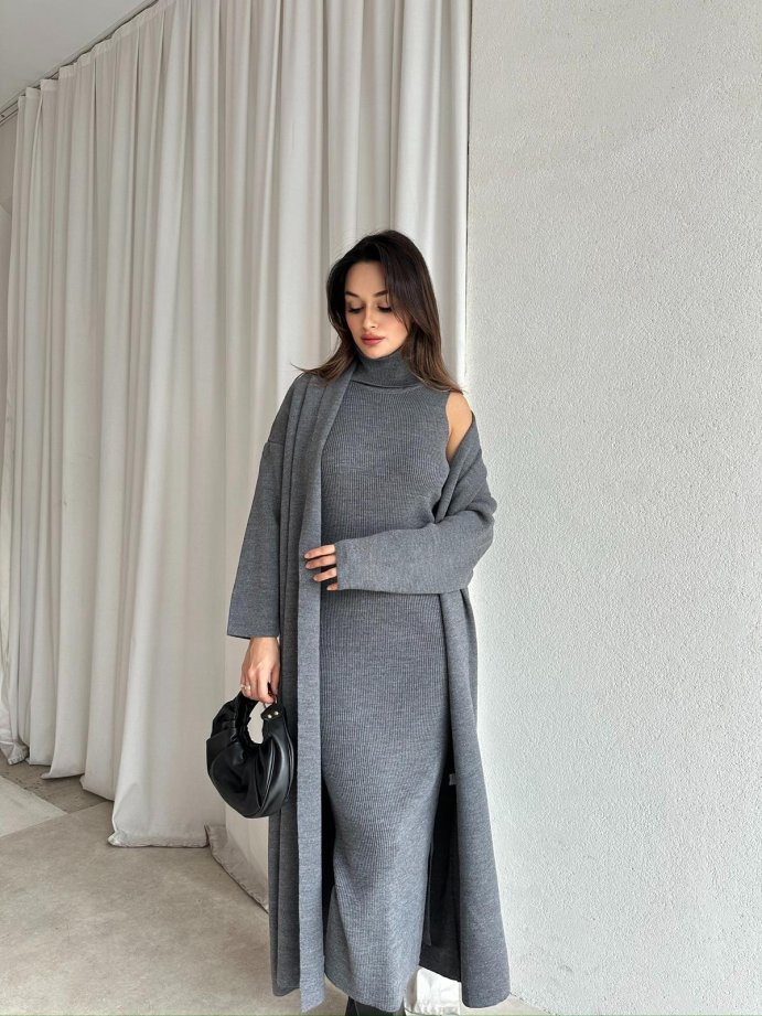Takımın hırkası omuzdan aşağı 128 cm elbisesi ise 127 cm dir