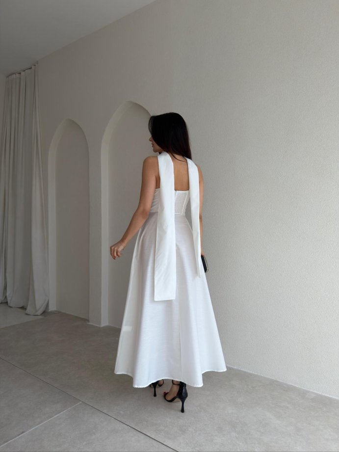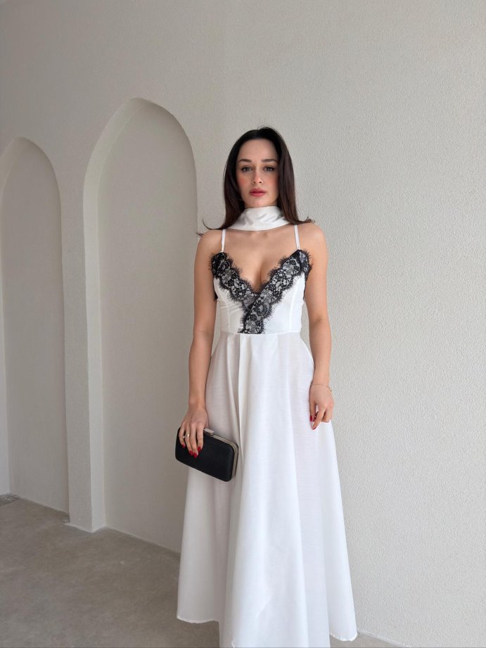 BAROK Dantel Detaylı Maxi Elbise 9035 - Beyaz