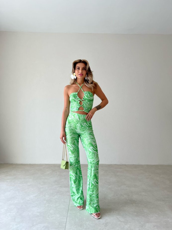 Batik Desen Bluz Pantolon İkili Takım - Yeşil