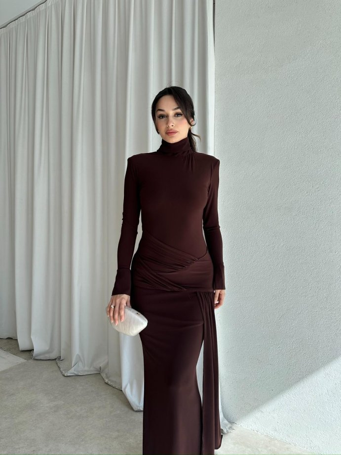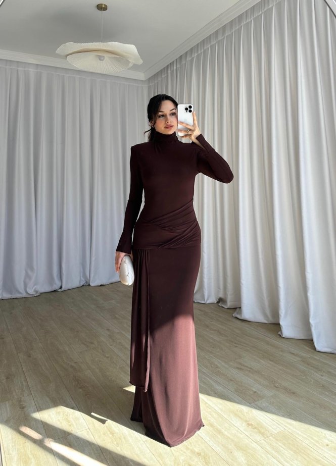 GODWİN Maxi Elbise 6493 - Acı Kahve