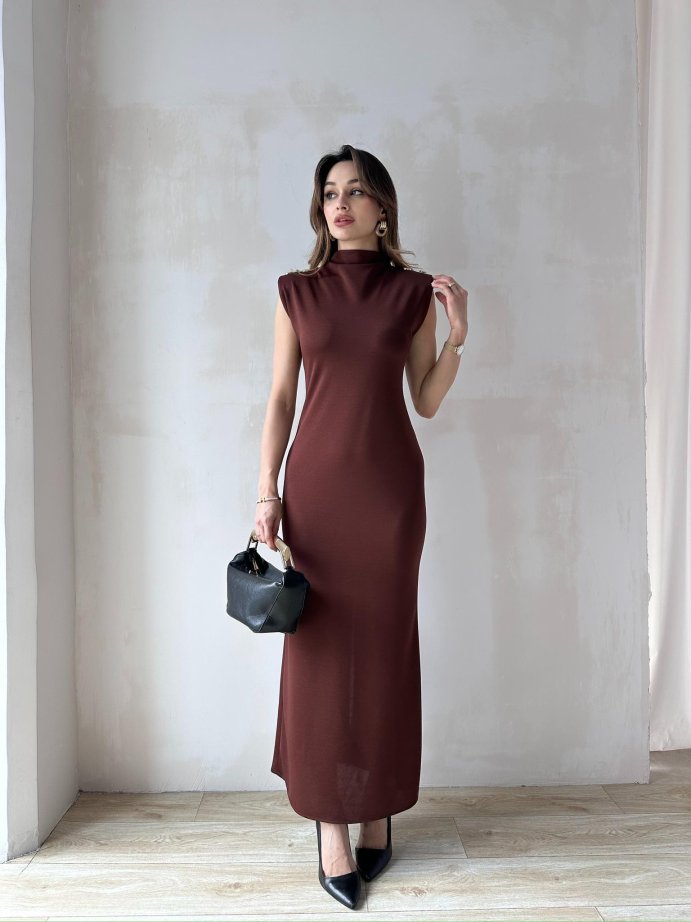 BELGRA Maxi Elbise 5048 - Acı Kahve