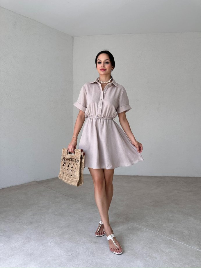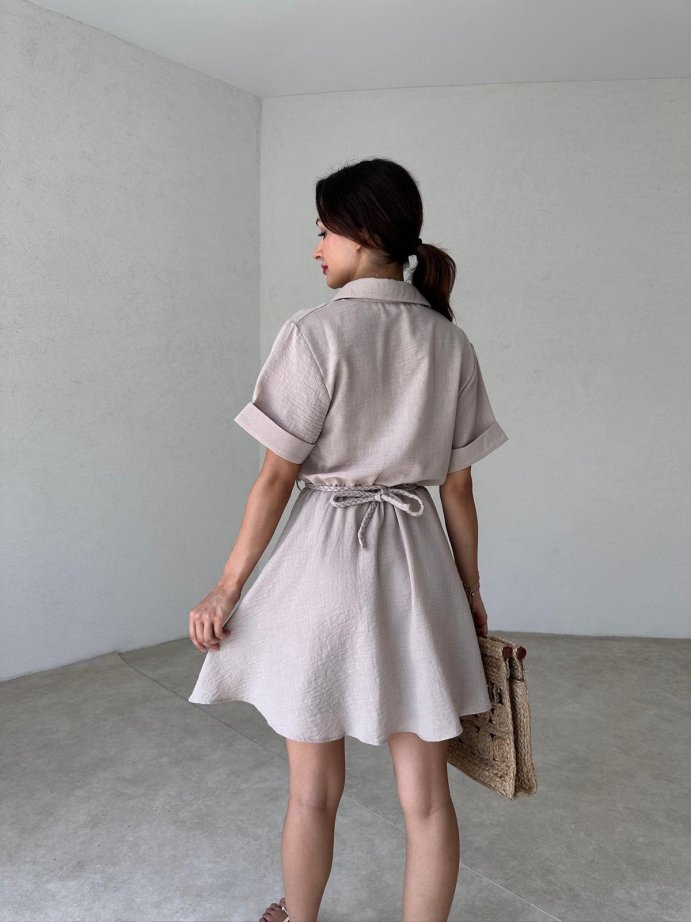 Dekolte Detaylı Midi THALES Elbise 5500 - Taş