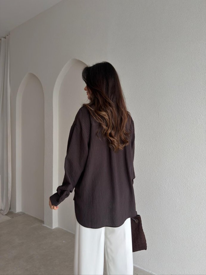 BELLA Çizgili Gömlek 1805 - Acı Kahve