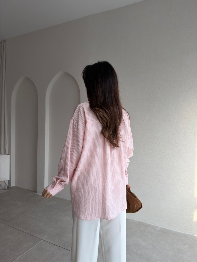 BELLA Çizgili Gömlek 1805 - Pudra