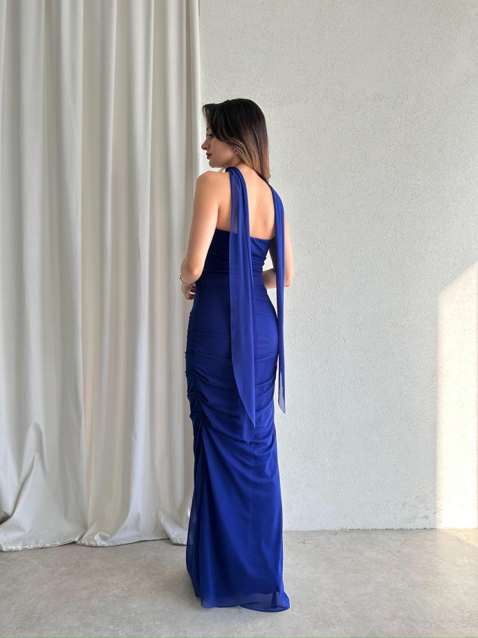 Dekolte Detaylı Midi THALES Elbise 5500 - Taş