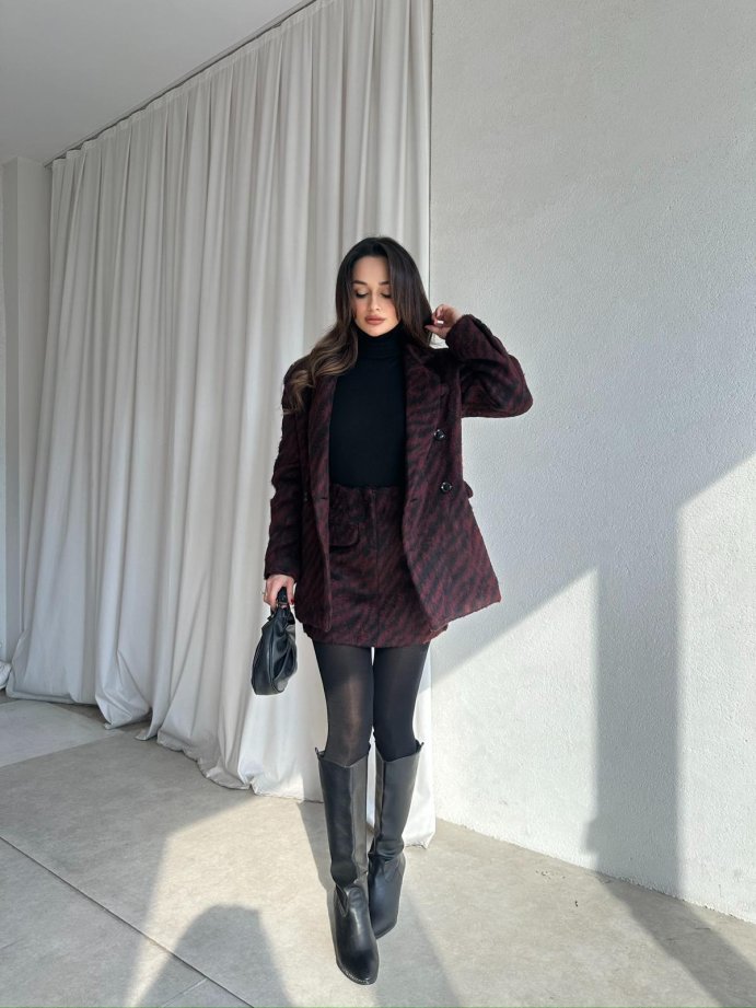 BLAİR Desenli Kaşe Takım tam kalıplıdır.