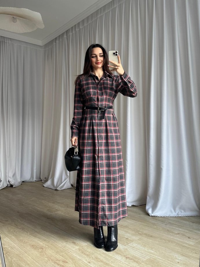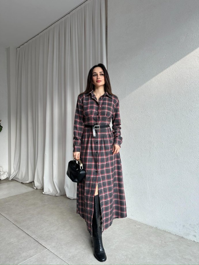 BLAKE Ekose Elbise 8705 - Kırmızı