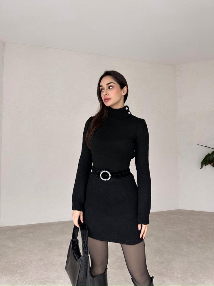 Dekolte Detaylı Midi THALES Elbise 5500 - Taş