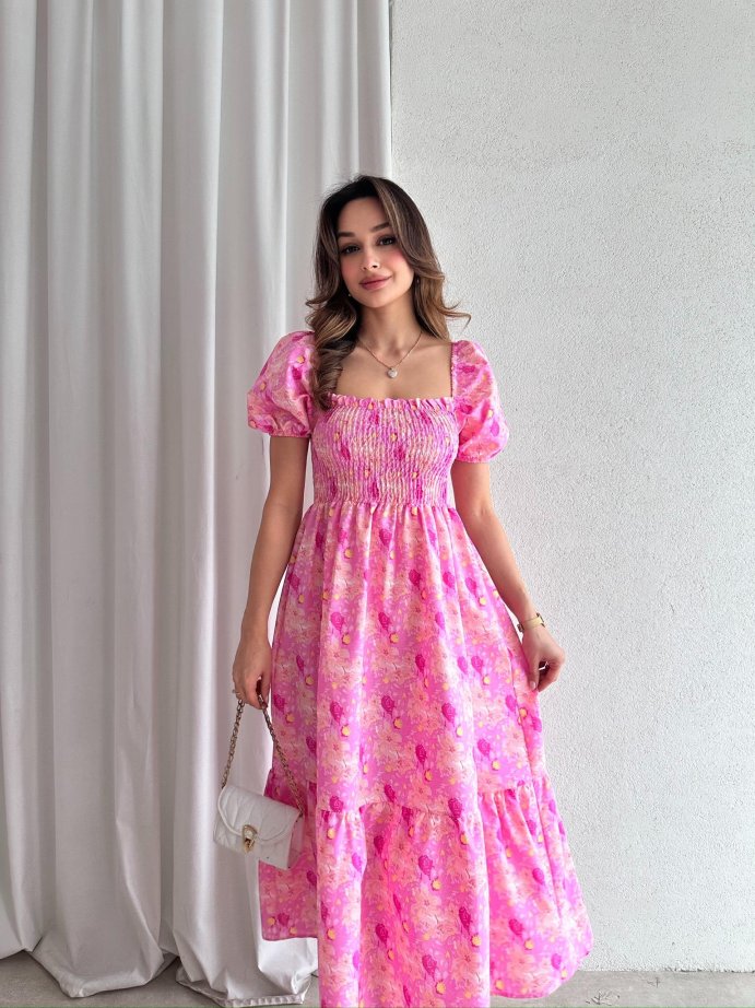 BONNİE Midi Elbise 7678 - Pembe