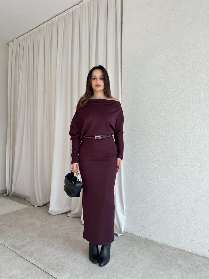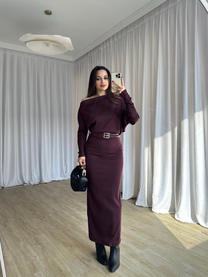 BOORMAN Midi Elbise 3943 - Mürdüm