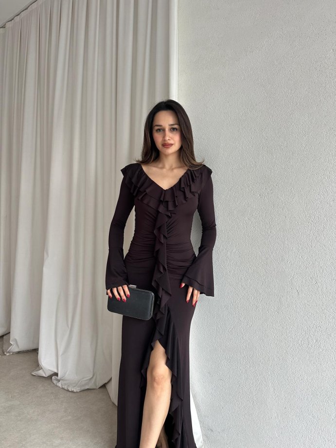 GODWİN Maxi Elbise 6493 - Acı Kahve