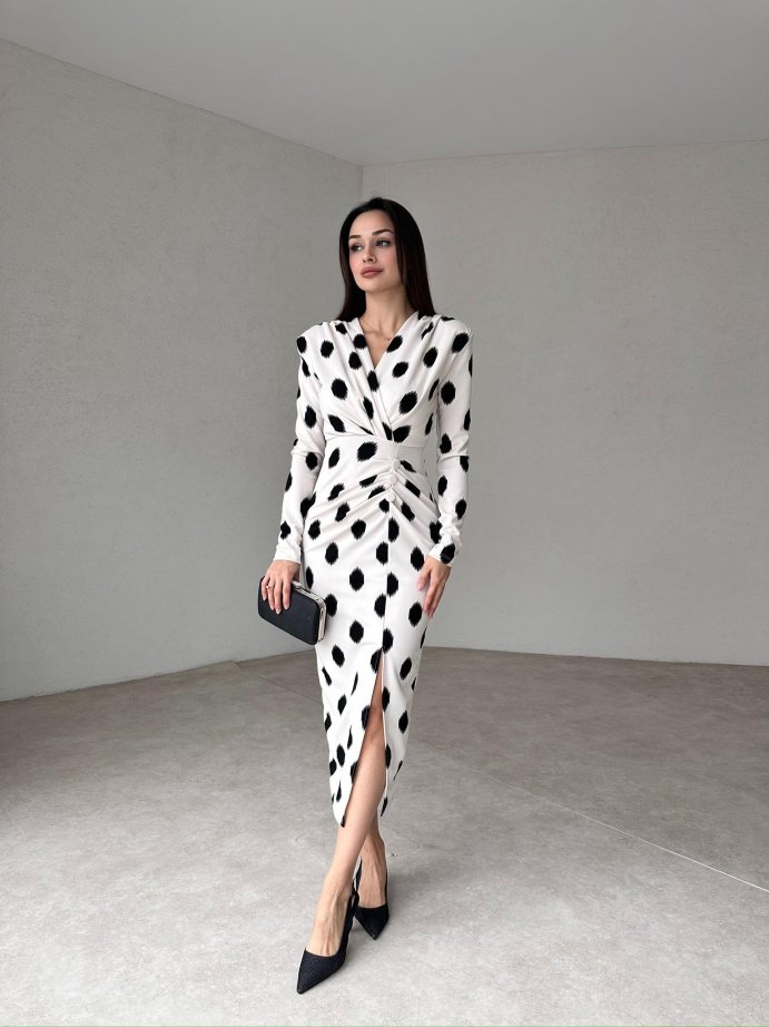 Dekolte Detaylı Midi THALES Elbise 5500 - Taş