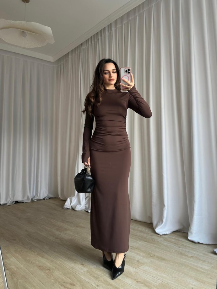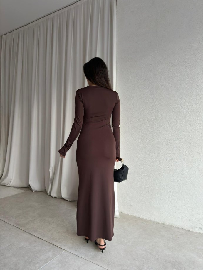 BRAVE Bisiklet Yaka Maxi Elbise 8760 - Acı Kahve