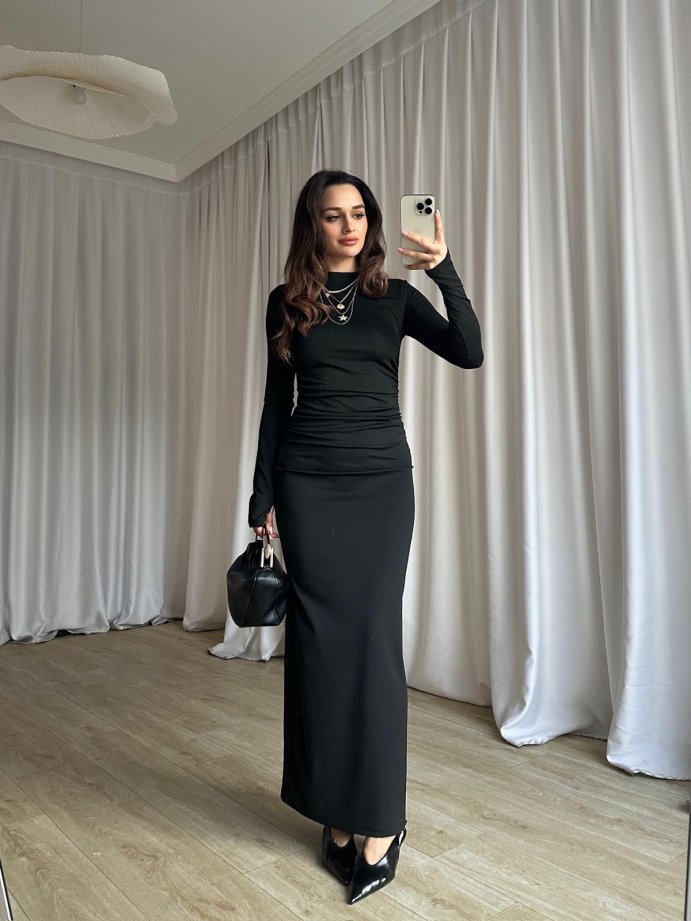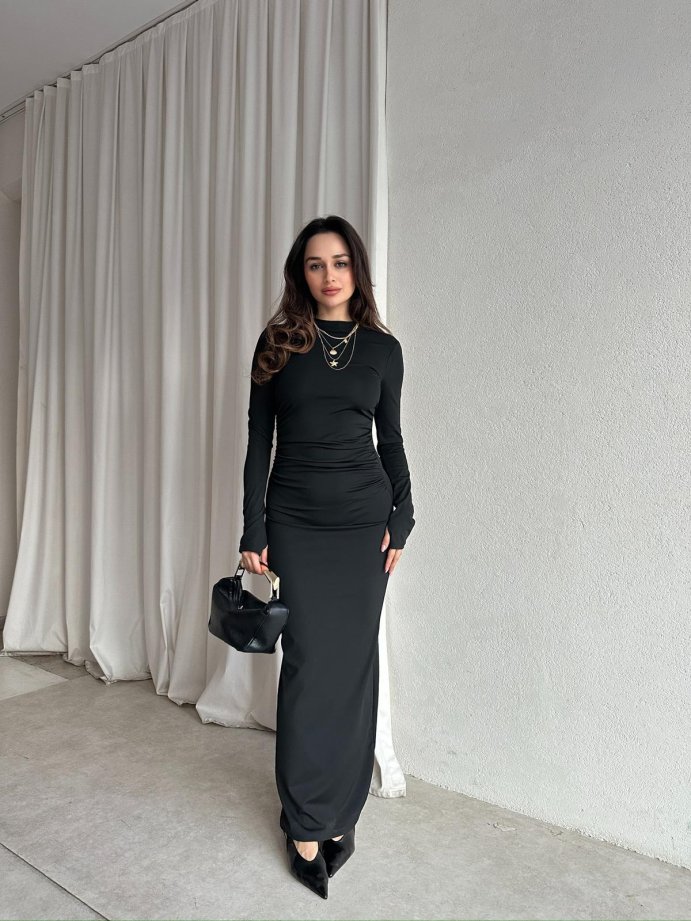 BRAVE Bisiklet Yaka Maxi Elbise 8760 - Siyah