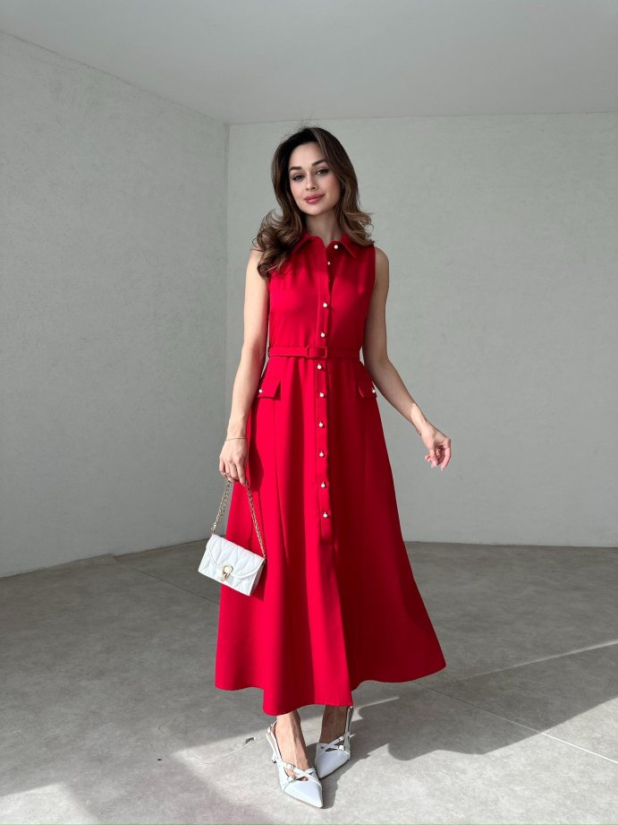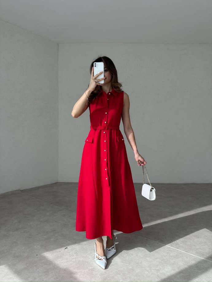 LOCAL Kemerli Midi Elbise 8981 - Beyaz
