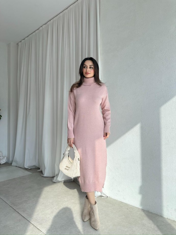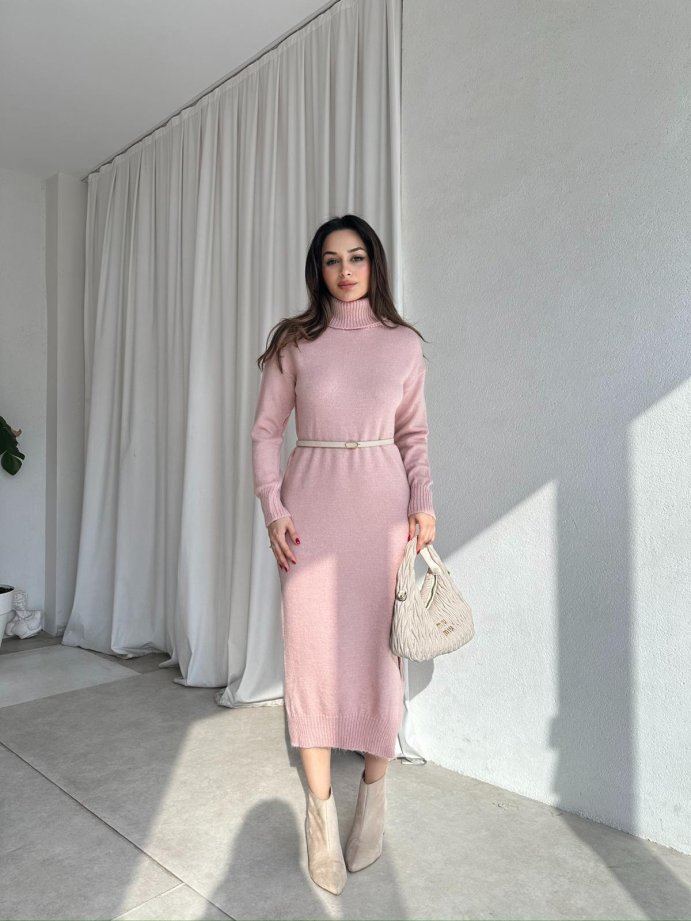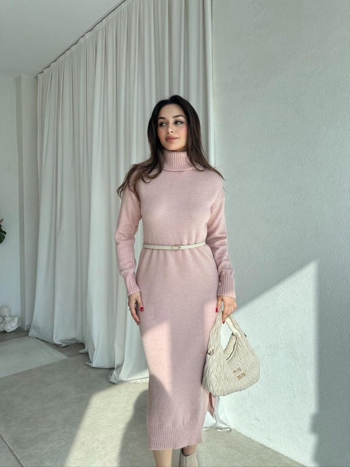 BRÜKSEL Triko Elbise 0385 - Pudra