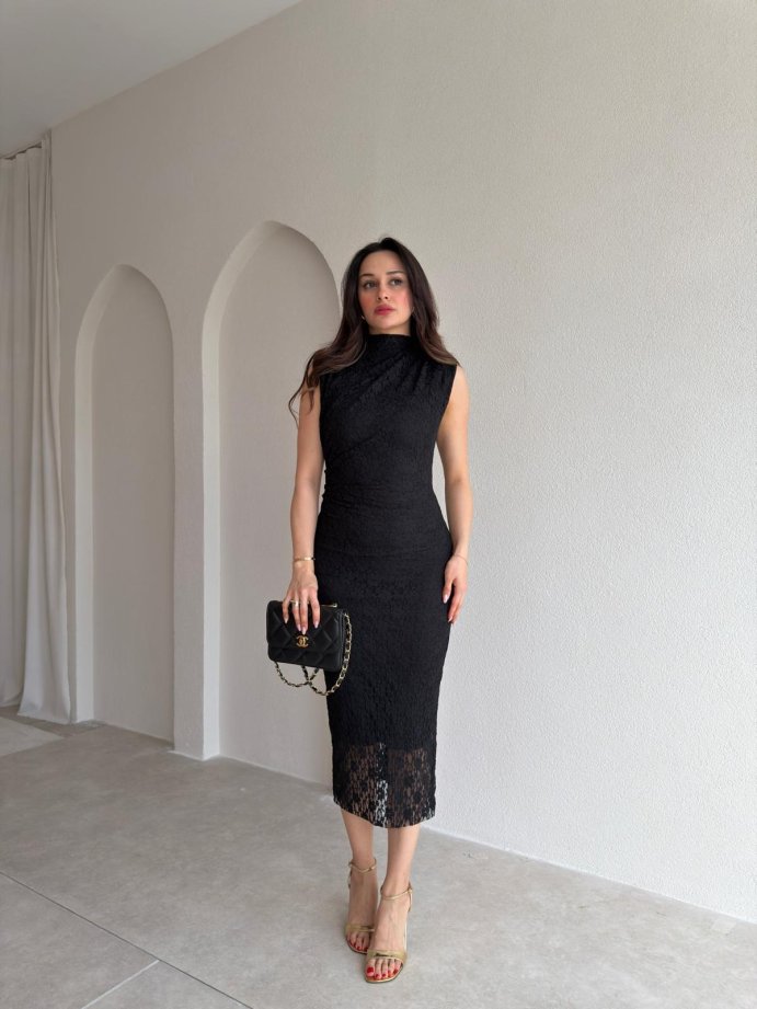 SANCHEZ Dantelli Midi Elbise 8911 - Siyah