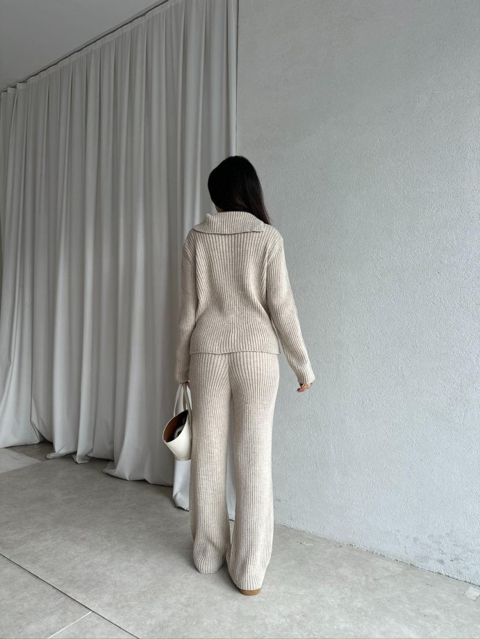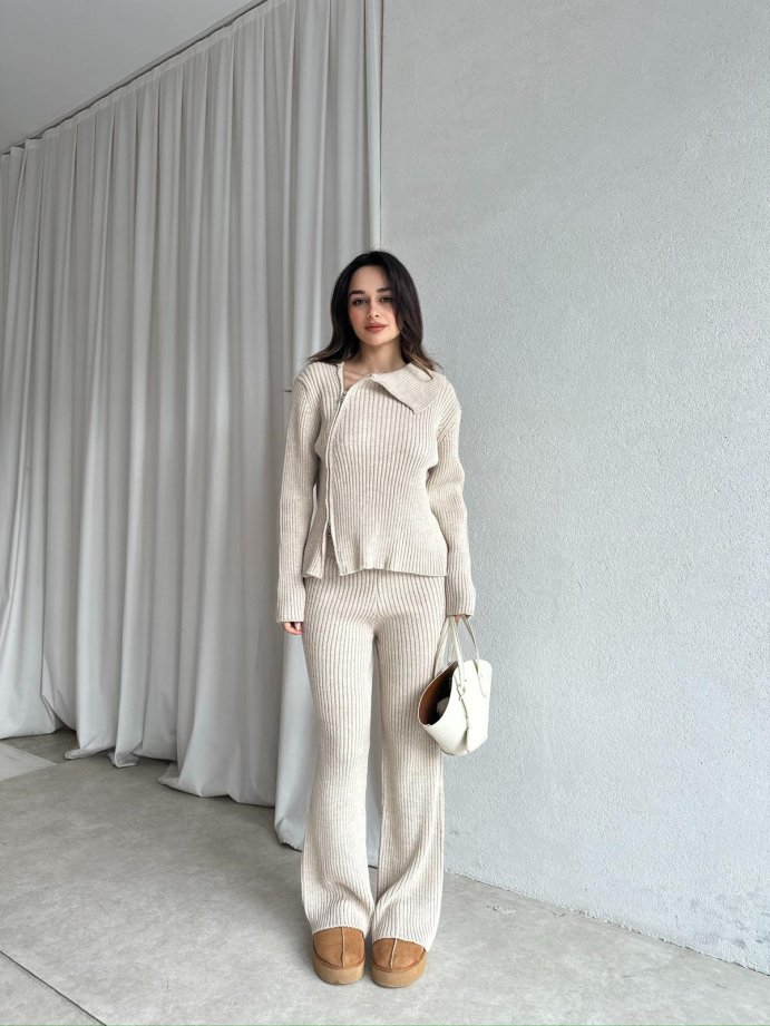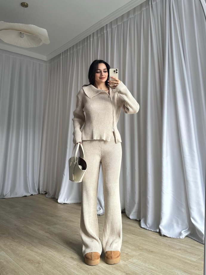 CASPER Fermuar Yaka Triko Takım 8685 - Krem