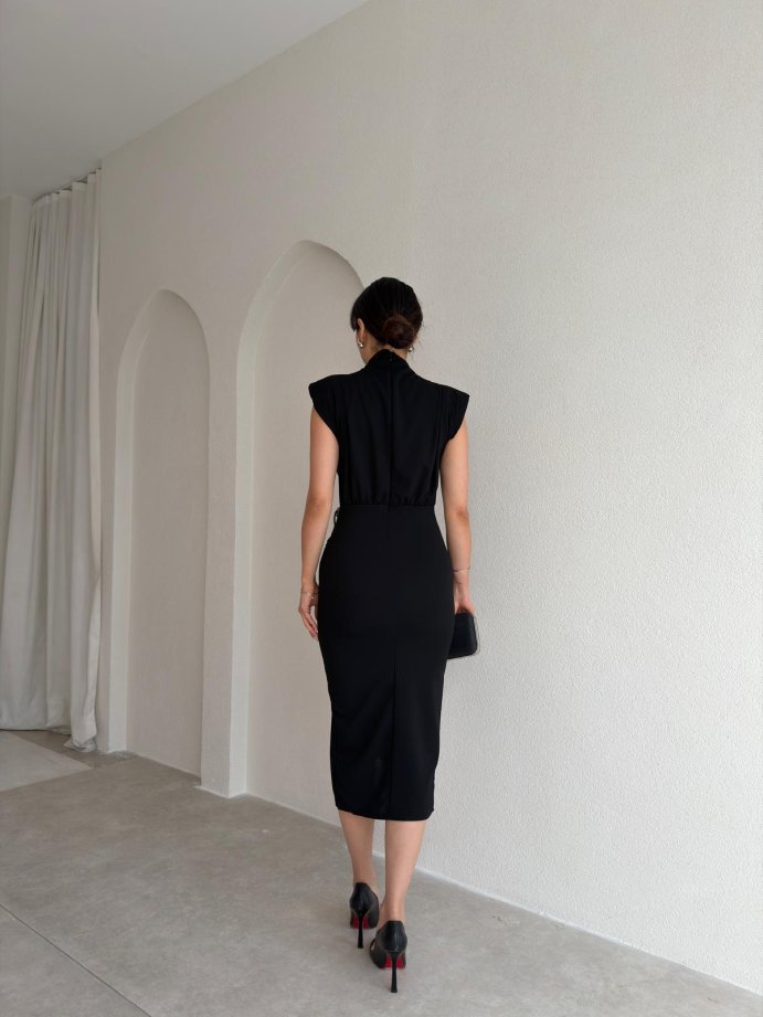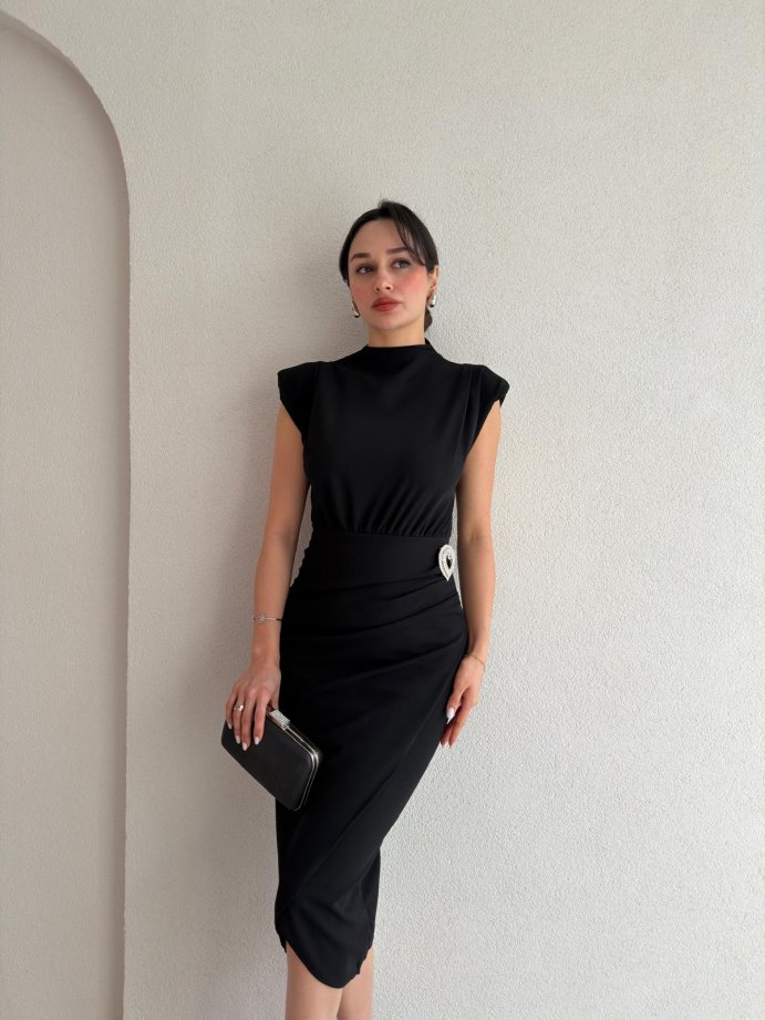 CASSİE Broşlu Midi Elbise 8400 - Siyah