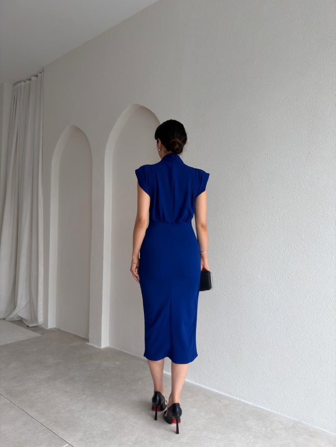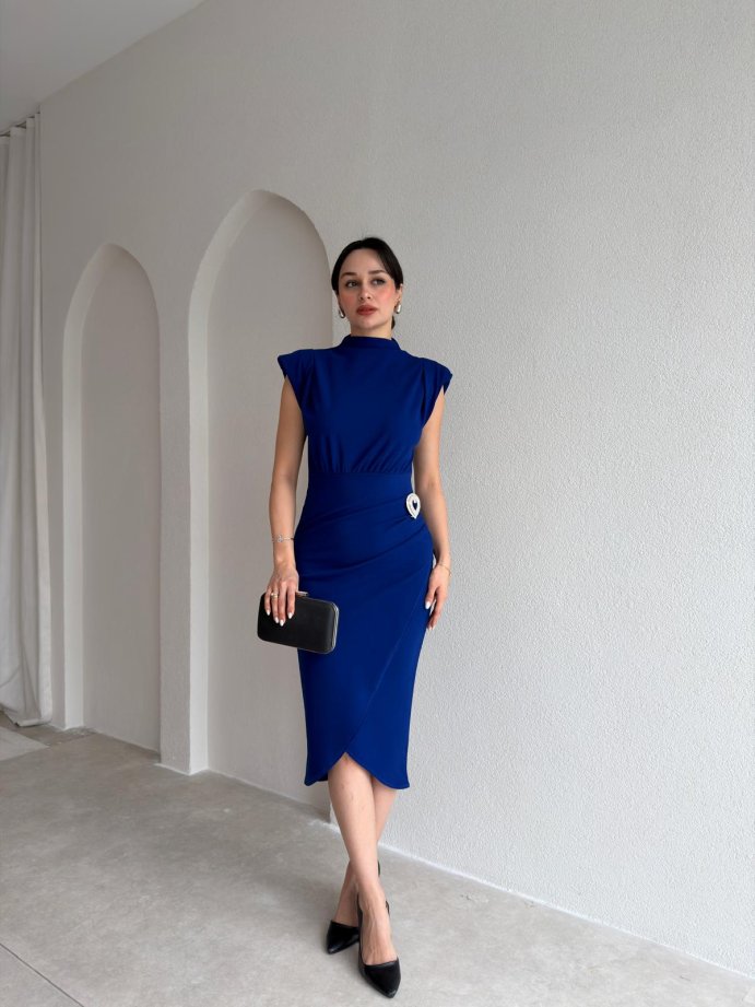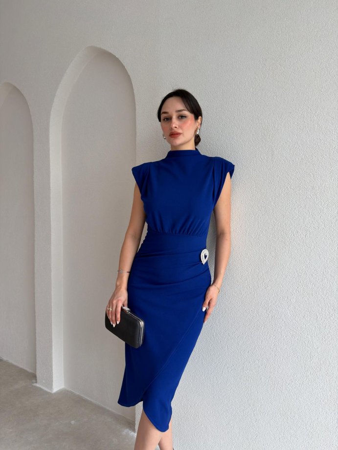 CASSİE Broşlu Midi Elbise 8400 - Saks Mavisi