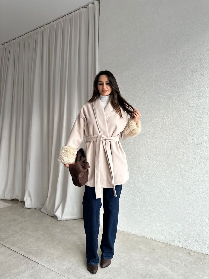 TOMRİS Kısa Kaban 8789 - Krem