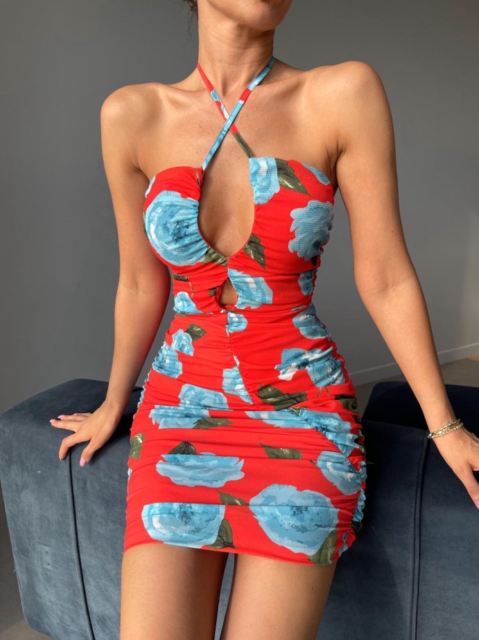 • Çiçek desenli göğüs dekolteli Pauline elbise elbise tam kalıplıdır.
