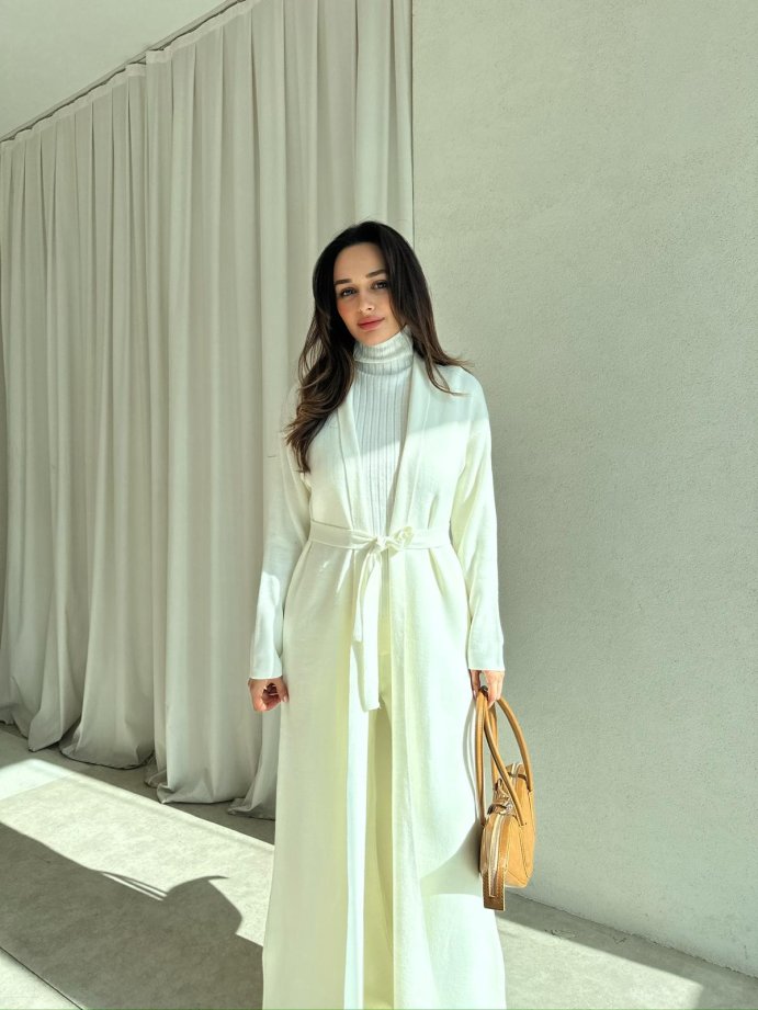 Hırka omuzdan aşağı 130 cm uzunluğundadır.