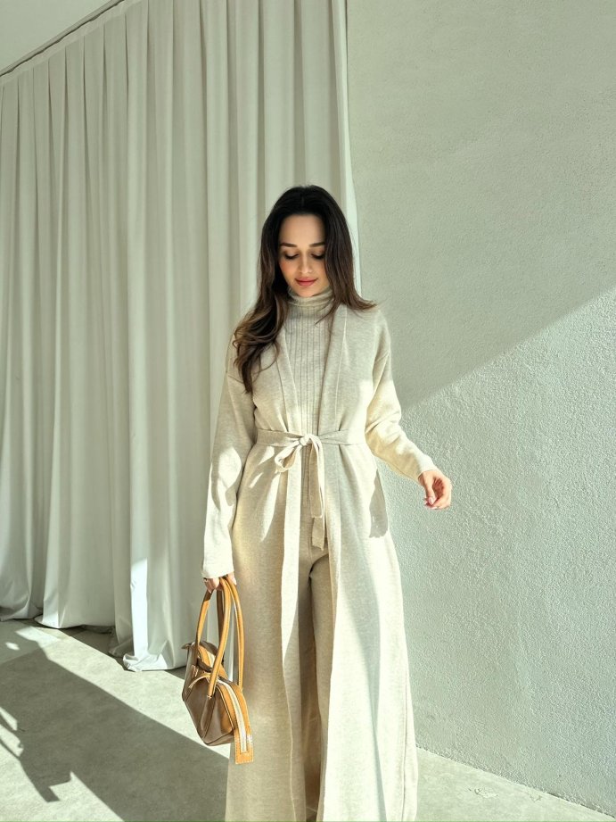 Hırka omuzdan aşağı 130 cm uzunluğundadır.