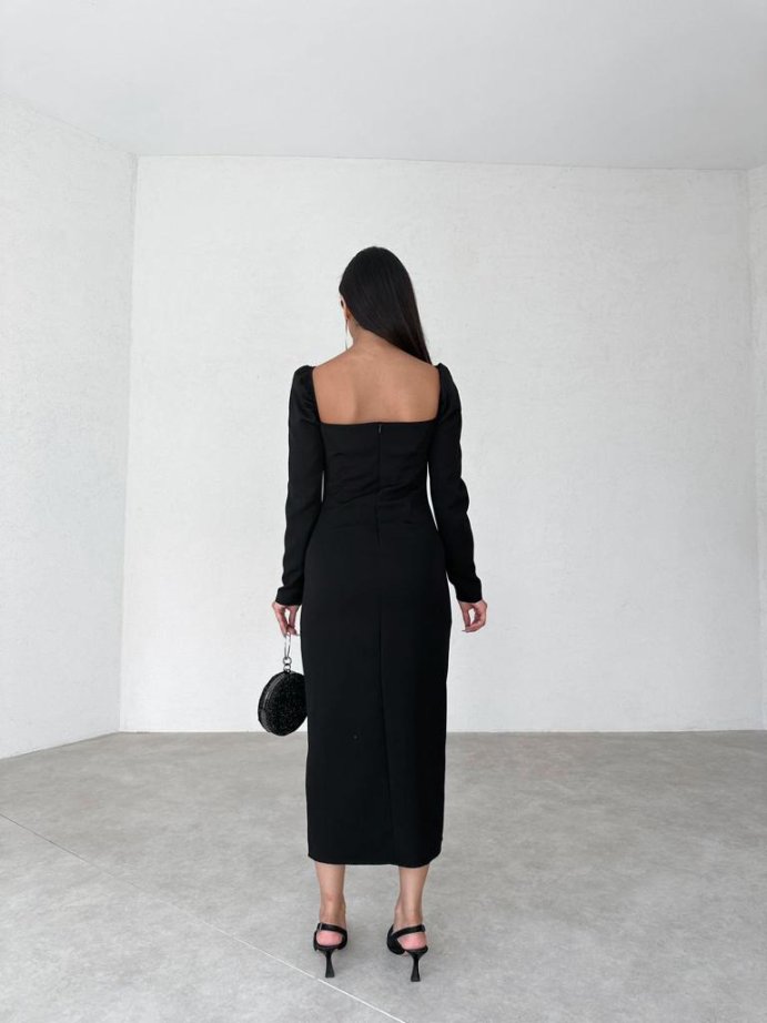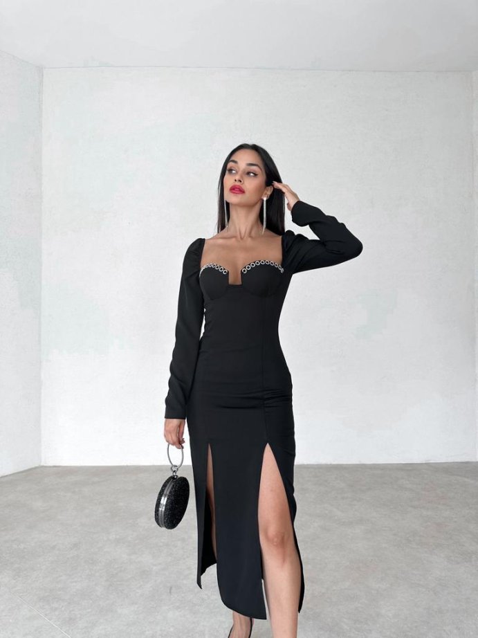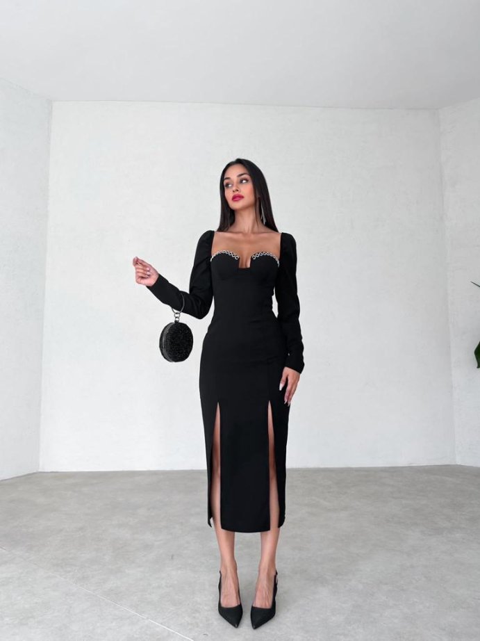 Çift Yırtmaç Detaylı Midi JİLLİAN Elbise tam kalıplıdır.