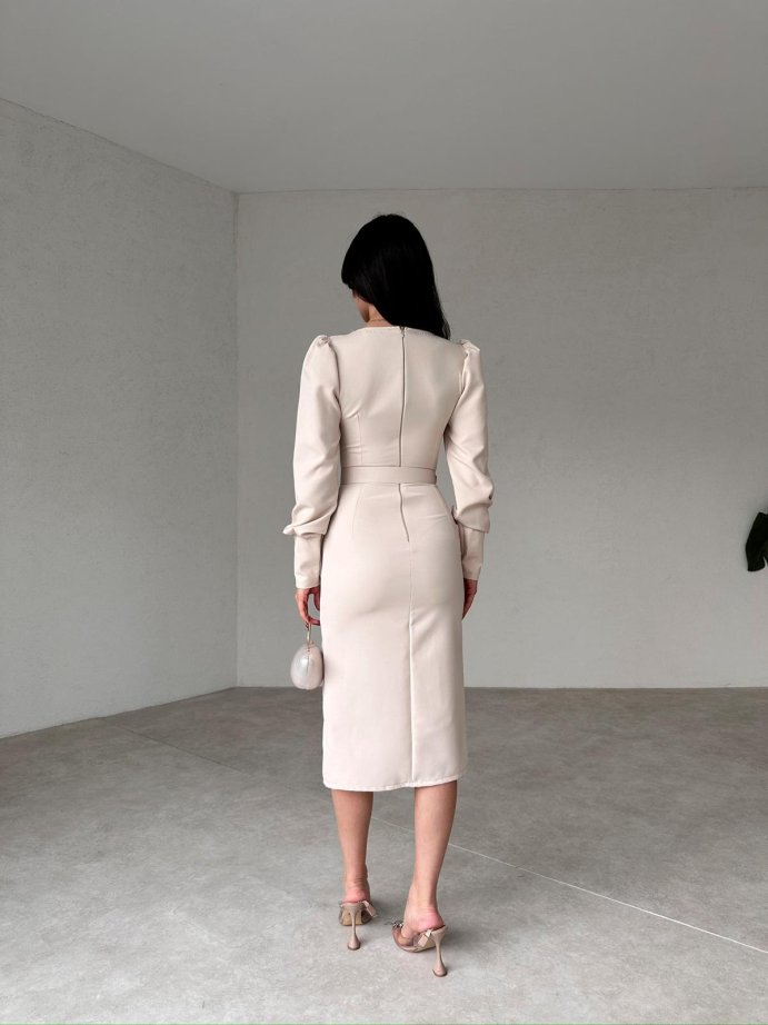 Çift Yırtmaçlı Midi OSWALD Elbise 2053 - Krem