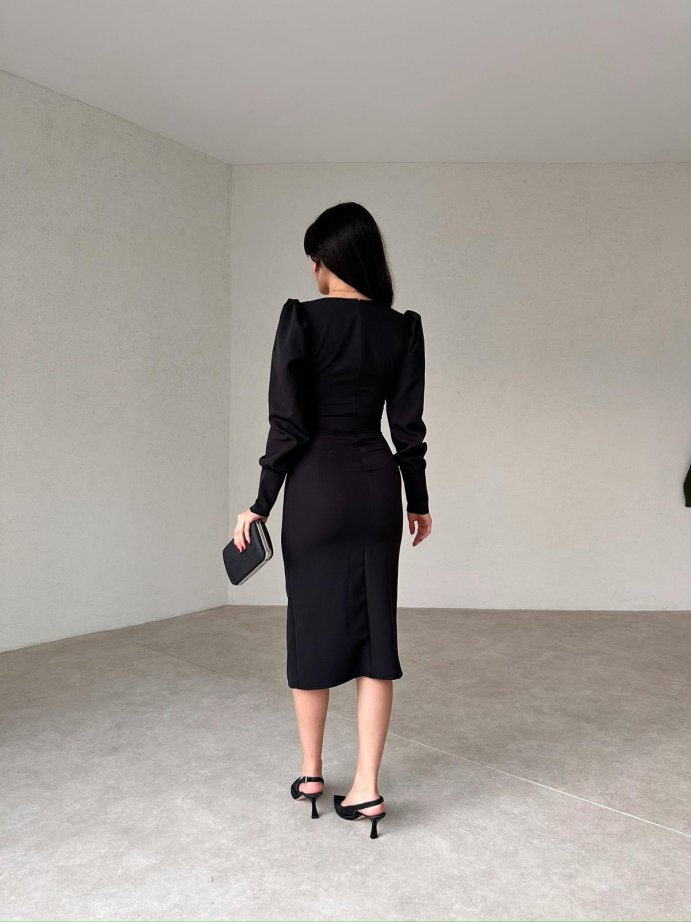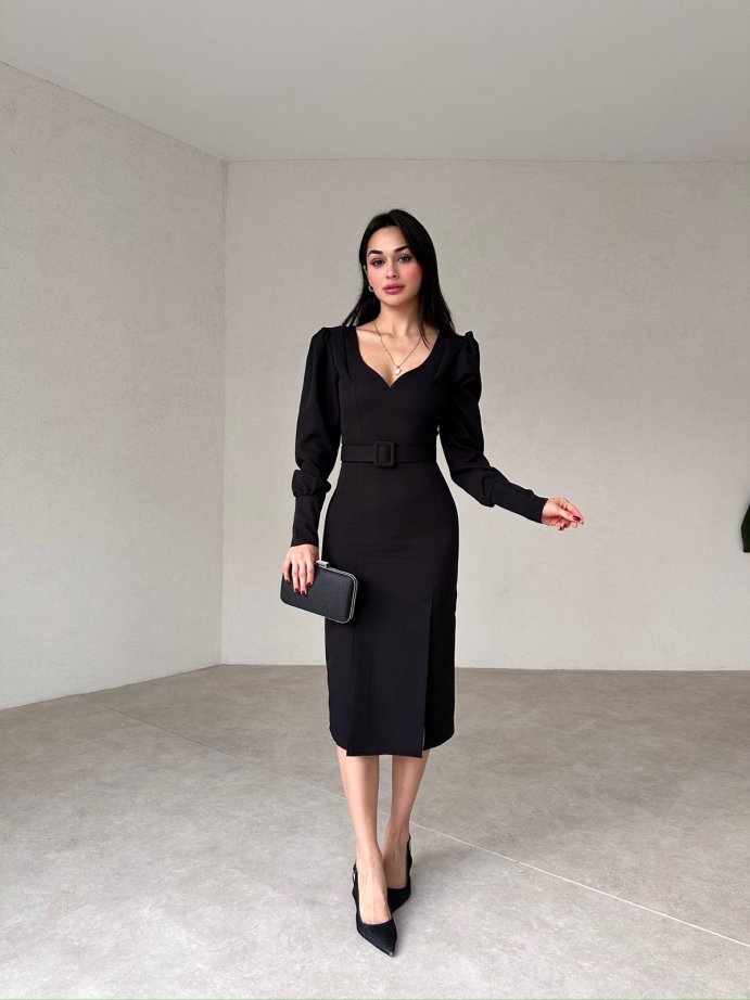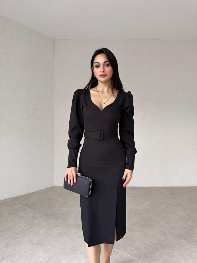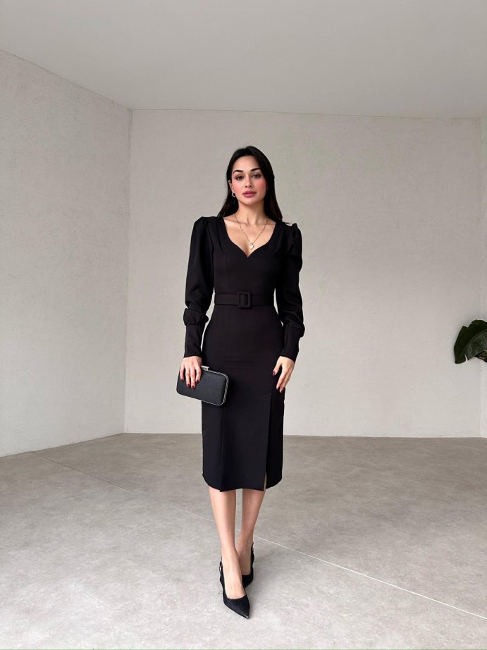 Çift Yırtmaçlı Midi OSWALD Elbise 2053 - Siyah