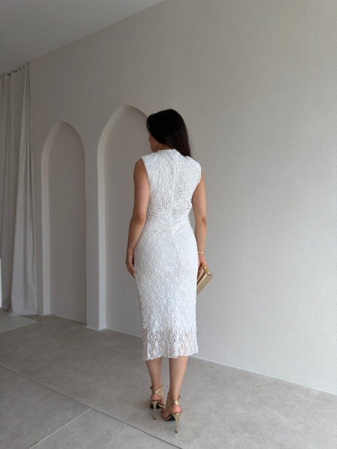 CAPRİCE Dantelli Midi Elbise 1811 - Beyaz