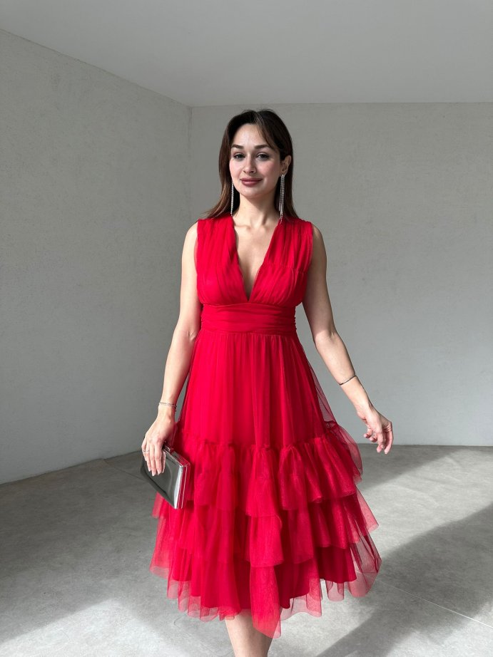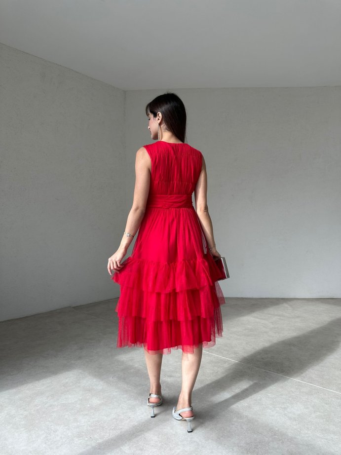 Dekolte Detaylı Midi THALES Elbise 5500 - Taş