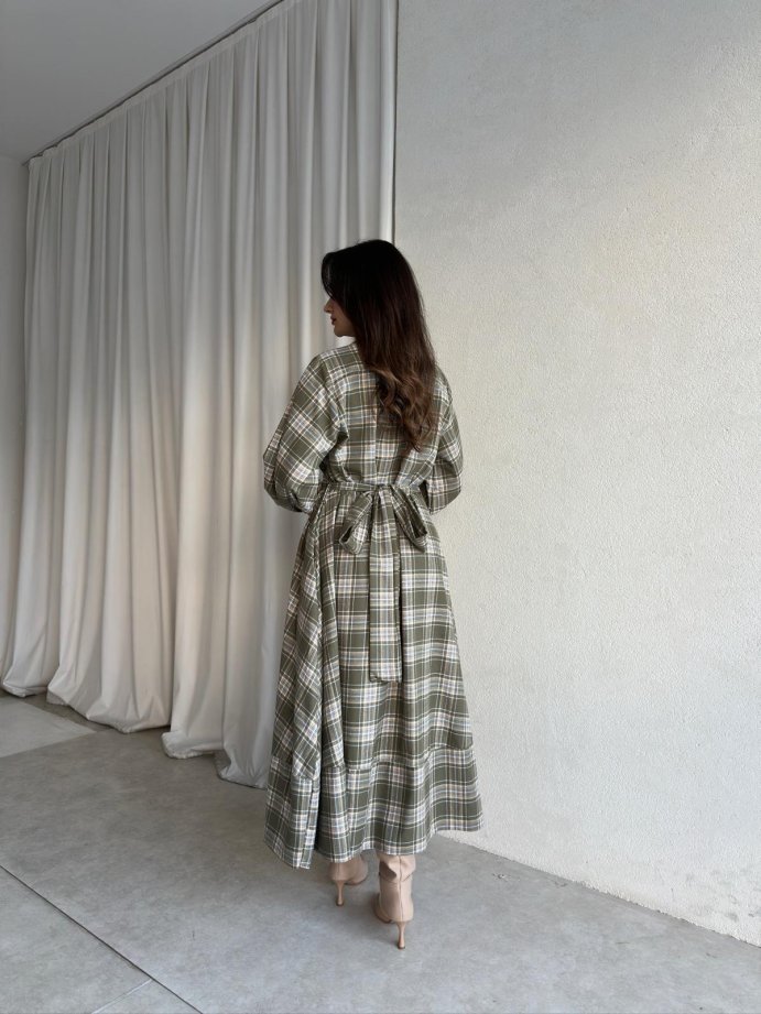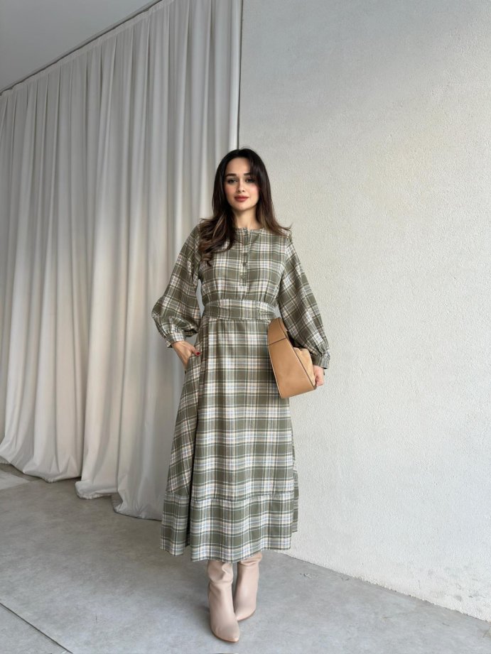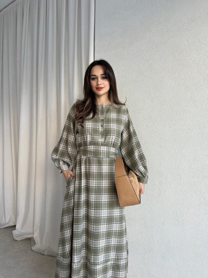 CRATER Ekose Elbise 8344 - Yağ Yeşili