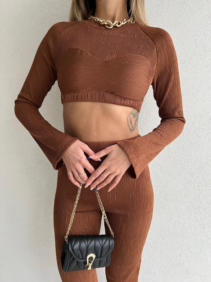 Crop-Pantolon Flash Takım 6423 - Kahverengi